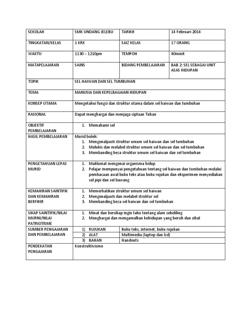 Contoh Rph Sains Dlp Lesson Plan Cognitive Science Human Body Unit Study Cognitive Science Human Body Unit